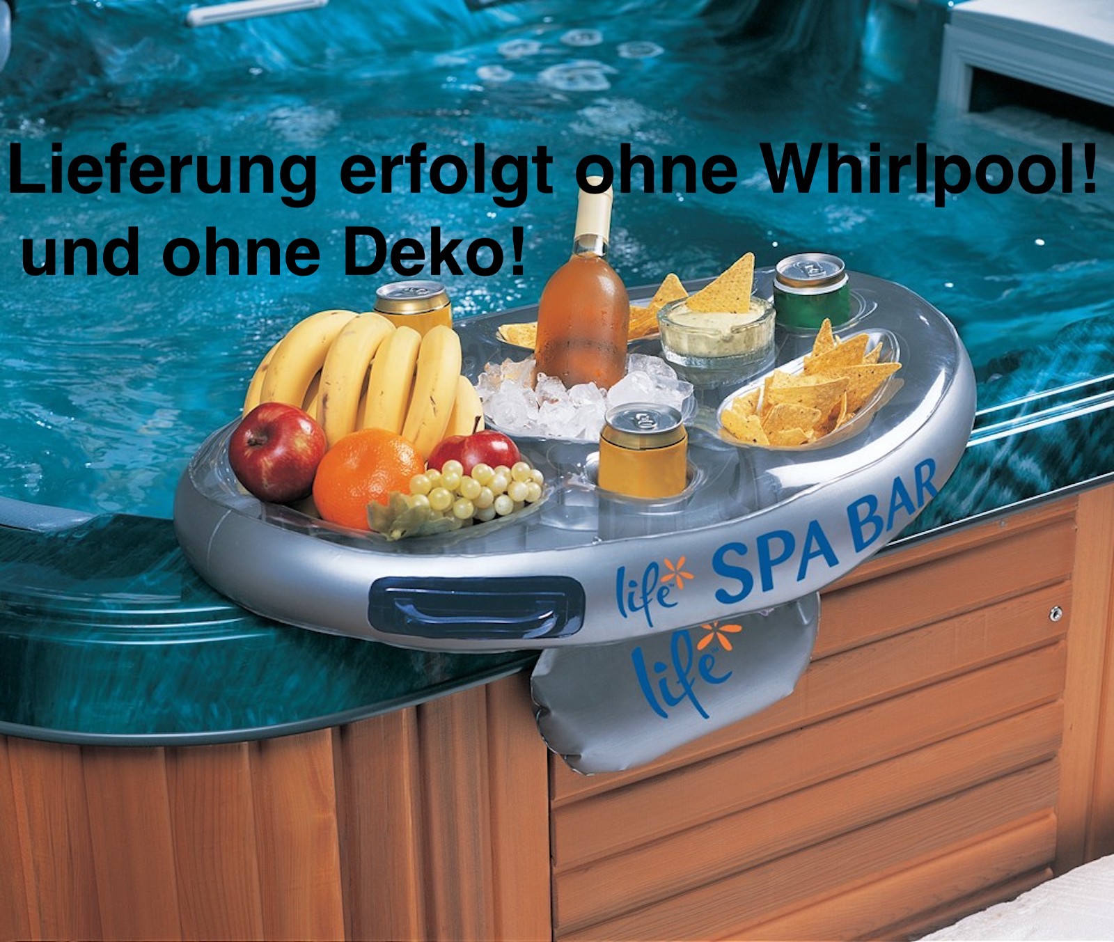 - Die Bar kann auf der Oberfläche treiben oder am Whirlpoolrand aufgelegt werden