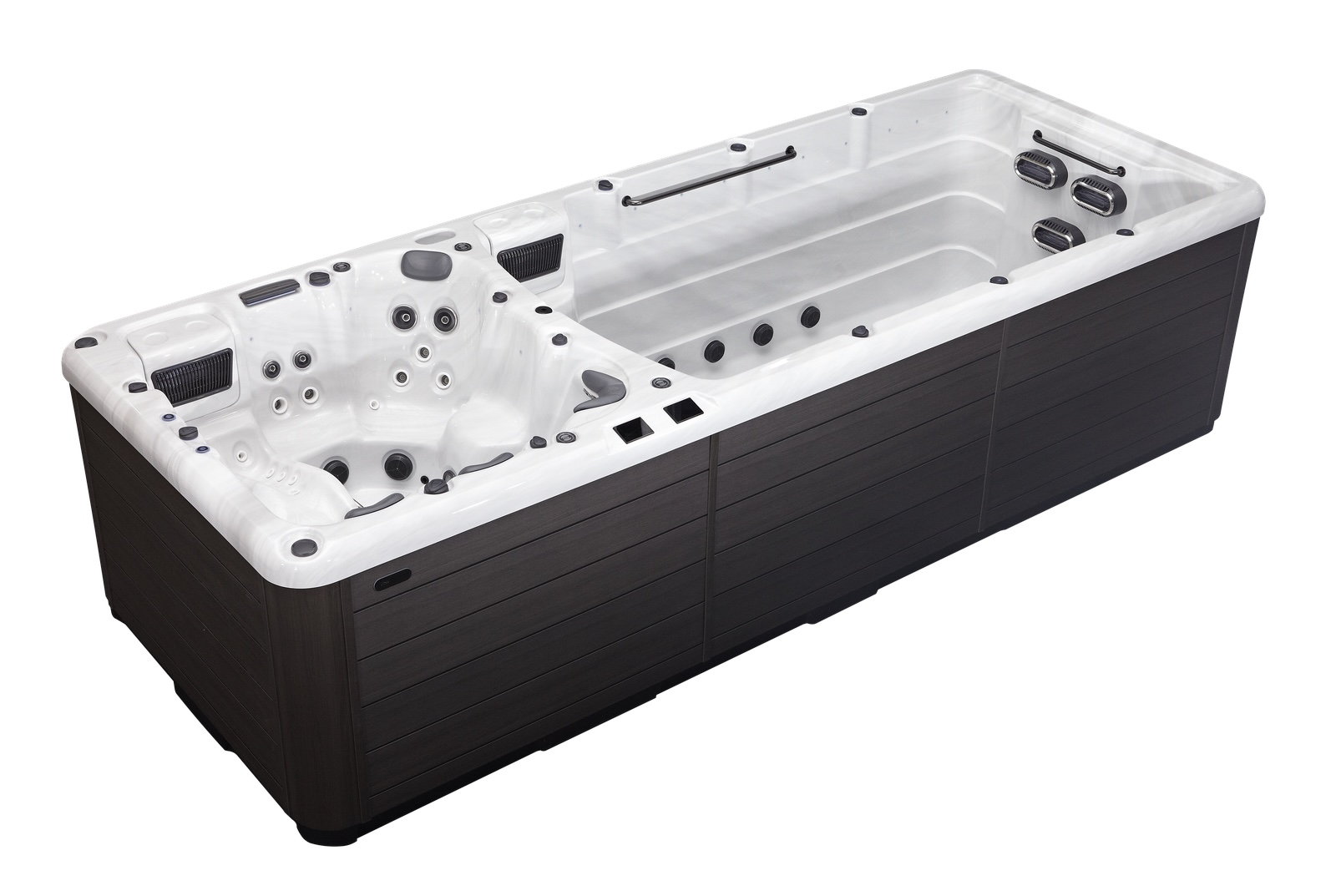 Der Helios Swim Spa ist ein vollständig geteilter Whirlpool, der eine vollständige Temperaturkontrolle beider Bereiche ermöglicht. Dies ermöglicht ein wärmeres, beruhigendes Hydrotherapie-Erlebnis im Spa-Bereich, während im Schwimmbereich eine etwas kühlere Temperatur für das Training beibehalten wird.