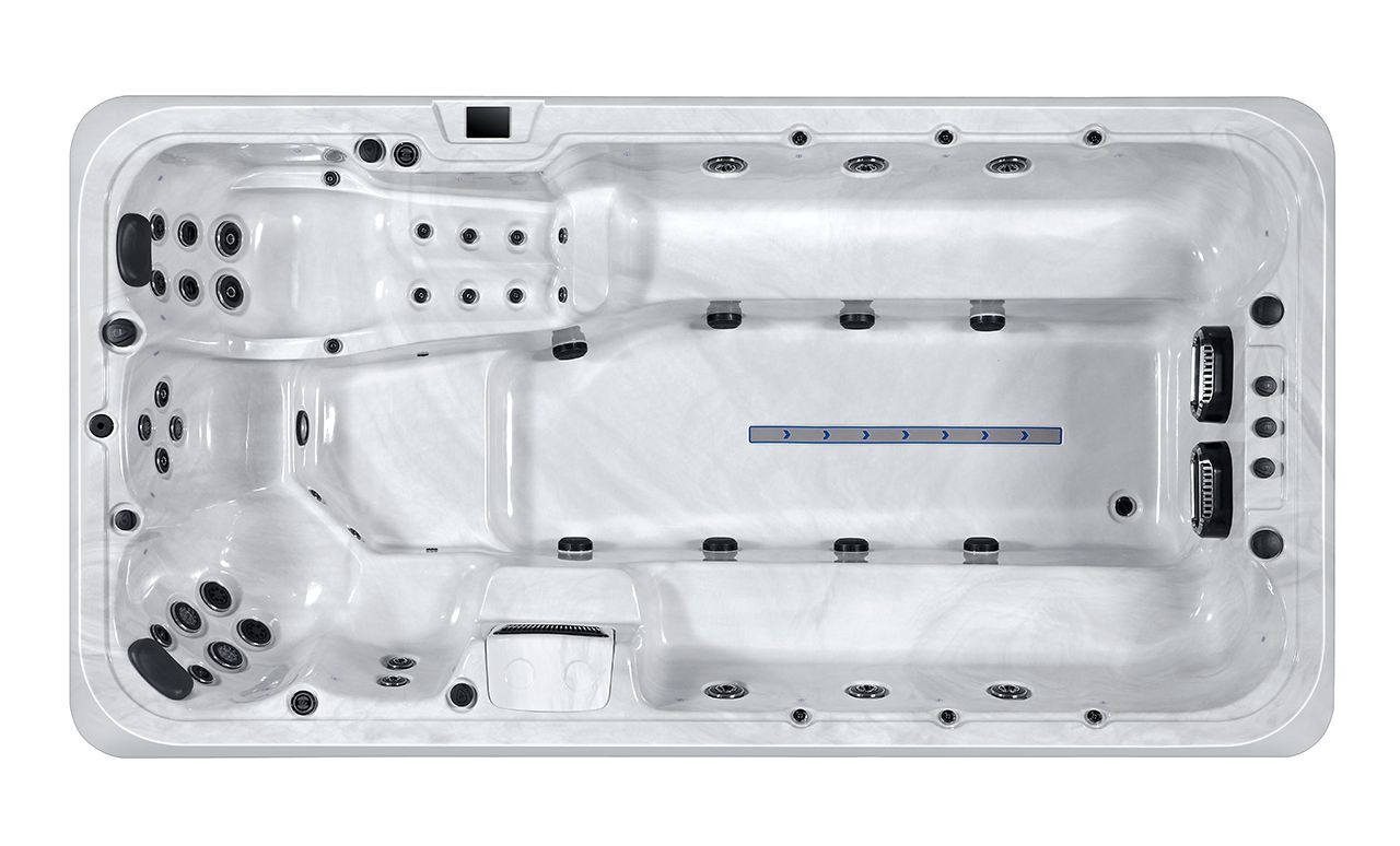 Der Titan Swim Spa ist ideal für Familienspaß oder ernsthafte Fitness-Enthusiasten und kombiniert eine starke Schwimmströmung mit luxuriösen Whirlpool-Eigenschaften. Seine 38 Düsen sorgen für ein dynamisches und beruhigendes Hydrotherapie-Erlebnis. Egal, ob Sie gegen die Strömung schwimmen, ein entspannendes Bad genießen oder sich mit leichten Übungen wie Walken beschäftigen, der Titan bietet die perfekte Umgebung für alle.