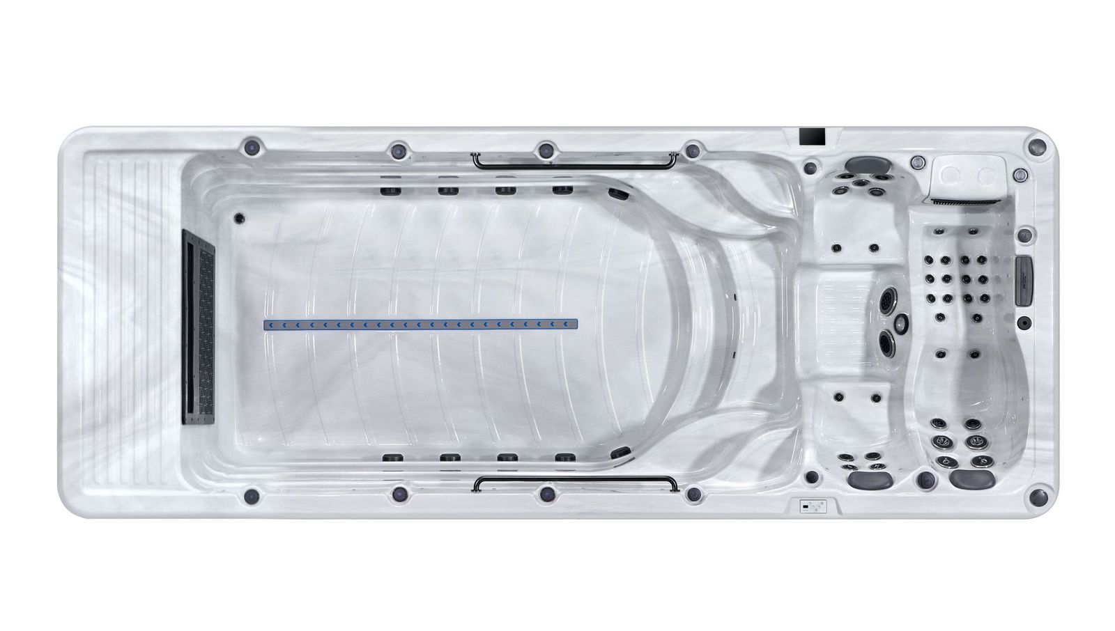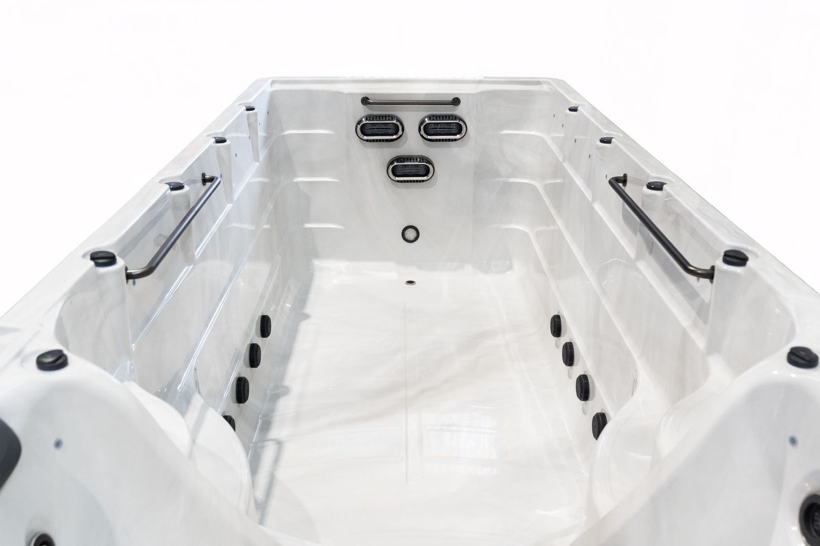 Der Zelus Pro Swim Spa wurde für Fitness und Hydrotherapie entwickelt und bietet mit dem Turbinensystem eine starke Leistung, die durch LED-Beleuchtung, beruhigende Wasserspiele und fortschrittliche Hydrotherapiedüsen ergänzt wird. Der Titan bietet reichlich Platz zum Schwimmen, Trainieren oder Entspannen. Das Spa-Ende ist der perfekte Platz für bis zu 3 Erwachsene, mit zwei bequemen Sitzen und einer Luxusliege.